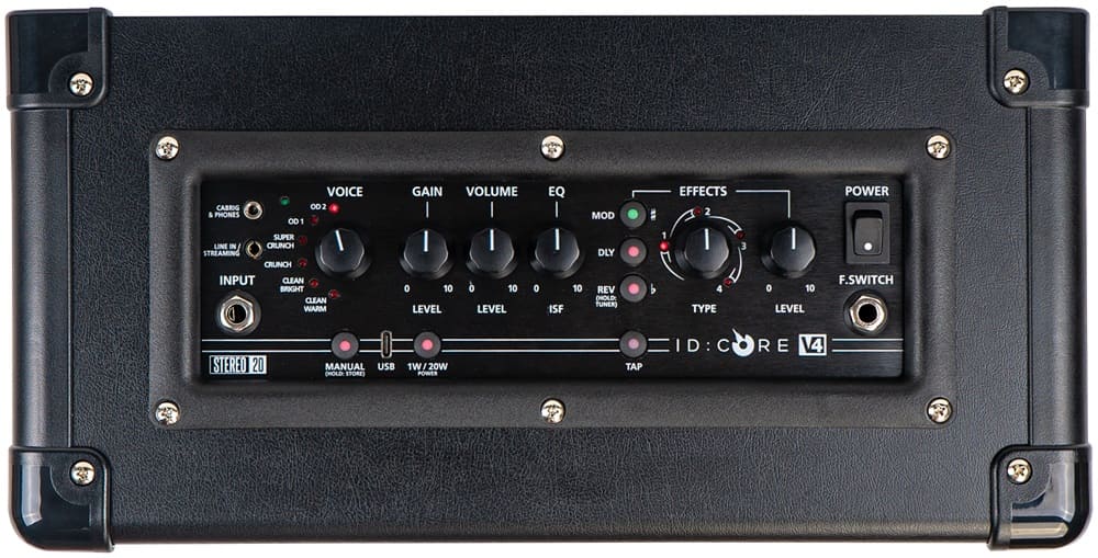 Die ID:Core V4 Verstärker sind mit 10W, 20W oder 40W Leistung erhältlich und aufgrund ihrer leichten Bauweise und integrierten Effekte sowohl für Anfänger als auch Profis geeignet. Der ID:Core 40 V4 bietet die gewohnt intuitiven Bedienelemente eines traditionellen Verstärkers, ist aufgrund seiner Programmierbarkeit aber deutlich vielseitiger. Über den Voice Regler lassen sich sechs verschiedene Sounds Clean Warm, Clean Bright, Crunch, Super Crunch, OD 1 und OD 2 aufrufen. In Kombination mit dem ISF Regler können diverse Sound von amerikanisch bis britisch und dazwischen eingestellt werden. Die Effektsektion des Amps erzeugt breite Stereo-Modulations, Delay- und Reverb-Effekte in Studio-Qualität. Mit der mitgelieferten Architect Software lassen sich über USB-C weitere Einstellungen vornehmen und abspeichern. Der Line In / Streaming Eingang ermöglicht, neben dem Abspielen von Musik, mithilfe eines 3,5mm Kabels das Streamen direkt über ein Smartphone.