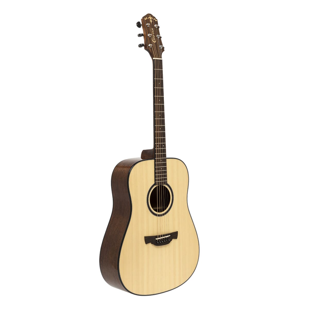 Die Crafter Able Series ABLE D600 N Akustikgitarre formt den raffinierten Klang einer massiven Fichtendecke und Zargen, Boden und Hals aus Mahagoni. Ein warmer und ausgewogener Naturton mit langem Sustain und vollem Mitteltonbereich ist garantiert, während das Palisandergriffbrett alles abrundet. Ein spielfertiger Satz D'Addario-Saiten ist vorinstalliert und sorgt zusammen mit dem kompensierten Sattel und den Diecast-Chrom-Mechaniken mit schwarzen Knöpfen für eine stabile und zuverlässige Stimmung.