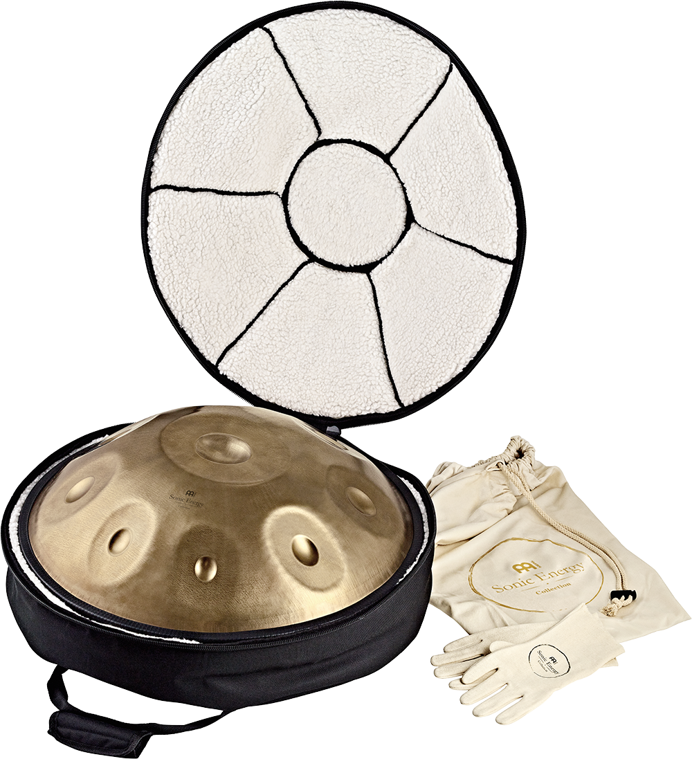 Die Meinl Sonic Energy Sensory Handpan wird mit größter Sorgfalt und Präzision aus hochwertigem Edelstahl von Hand gefertigt. Auf diese Weise können Sie ihr himmlische, raumfüllende Klänge entlocken. Das attraktive Vintage-Gold-Finish fügt sich harmonisch ins Gesamtbild ein und macht schon vor dem Spielen auf sich aufmerksam. Diese Sensory Handpan besitzt einen Durchmesser von 22" und ist auf die beliebte D-Amara-Skala (A4/a' 440 Hz) mit 9 Tönen gestimmt. Jeder kann dieses Instrument spielen und auch ohne Vorkenntnisse tolle Klänge erzeugen, denn alle Töne klingen harmonisch zueinander. Der angenehm tiefe Grundton in der Mitte wird von acht Tonfeldern umgeben, die einen reinen und beruhigenden Klang erzeugen. Auf der Unterseite der Sensory Handpan befinden sich zwei Schalllöcher, die in entgegengesetzte Richtungen zeigen, um sowohl dem Spieler als auch den Zuhörern ein realistisches Klangbild zu liefern.