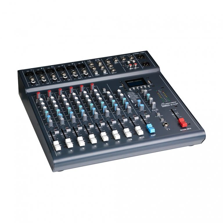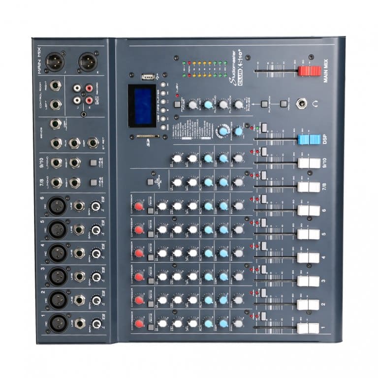 - 3-band EQ und High-Pass-Filter auf allen Mikrofon-Kanälen