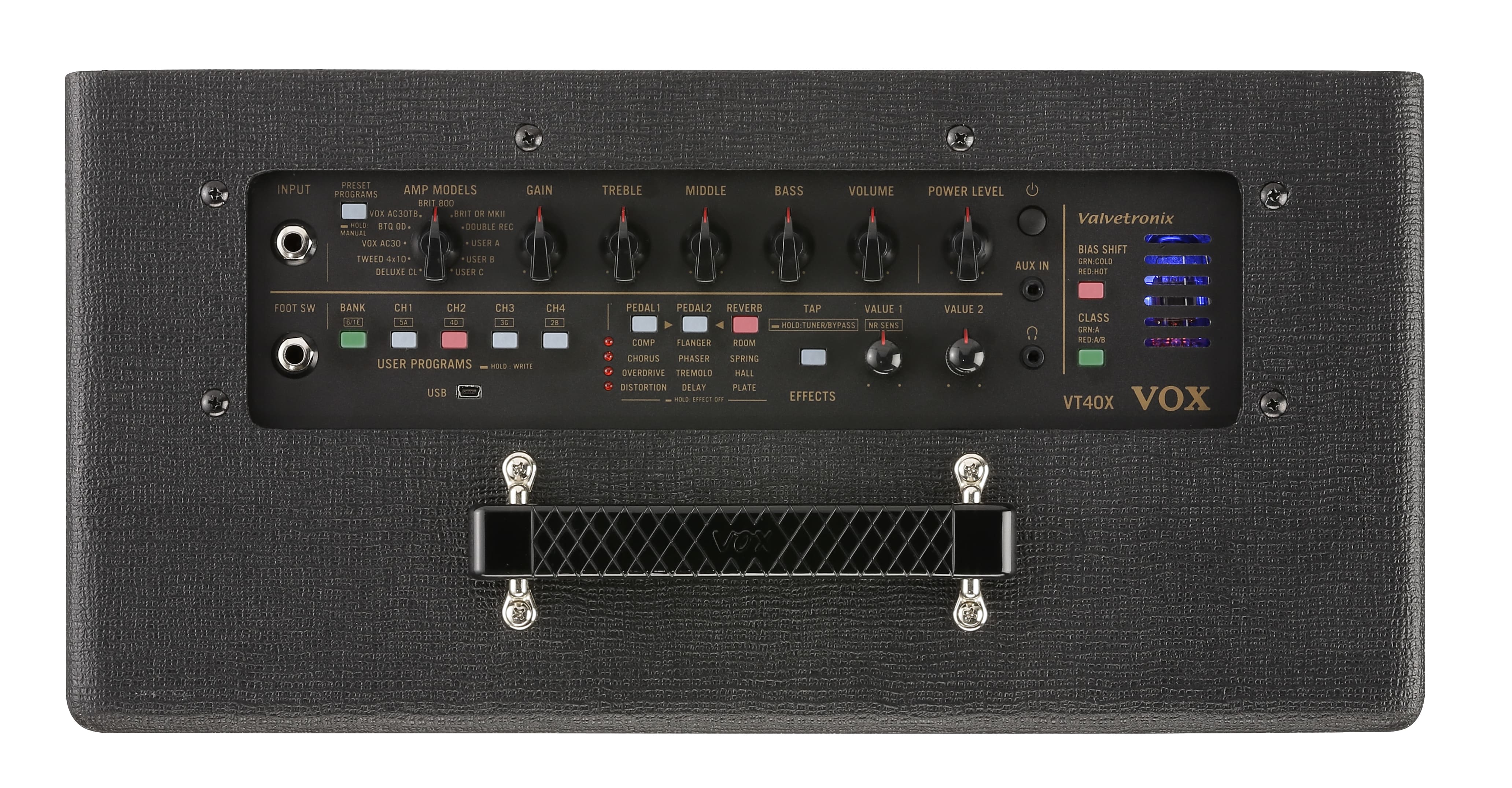 Mit den VT20X/VT40X/VT100X Amps stellt VOX eine brandneue Modeling-Engine vor, die in Sachen Sound absolut auf dem neuesten Stand der Technik ist. Dank der VET-Technologie (Virtual Element Technology), die auf der Analyse der Bauteile und Amp-Schaltungen beruht, warten die VTX-Verstärker mit einer Authentizität auf, welche absolut beeindruckend ist. Auch diese Amps enthalten selbstverständlich den mehrstufigen Valvetronix-Röhrenvorverstärker.