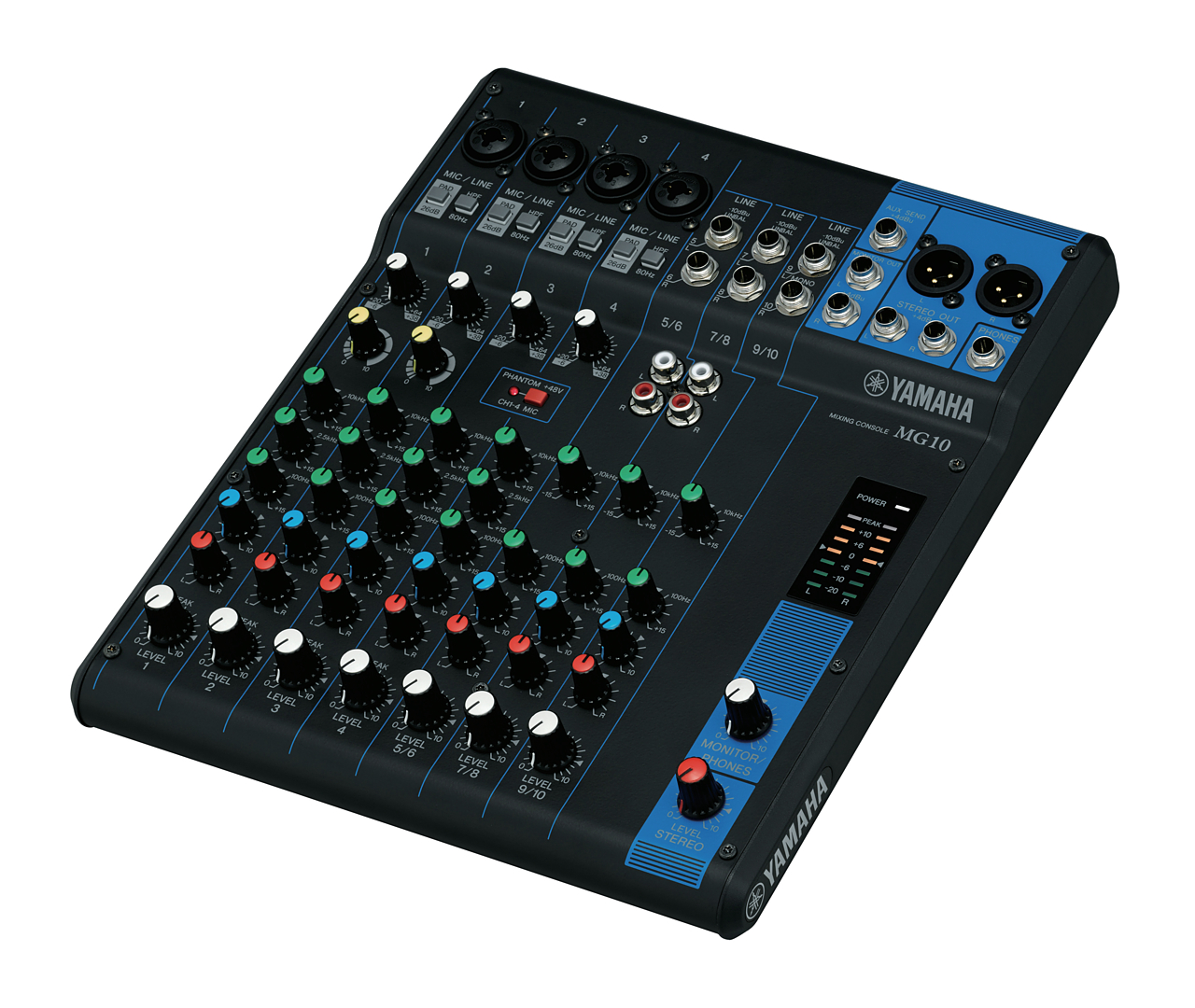 - 3-Band EQ für Kanäle 1 - 4 & 2-Bad EQ für Kanäle 5/6 - 9/10